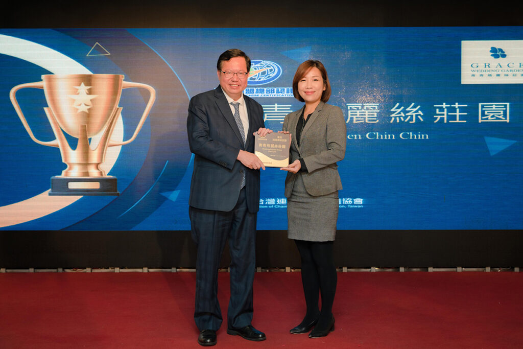 社團法人台灣連鎖加盟促進協會日前於桃園青青格麗絲莊園餐廳,舉辦首屆台灣優良加盟總部認證頒證典禮,由行政院副院長鄭文燦親自為通過認證的13家連鎖加盟品牌頒發證書。