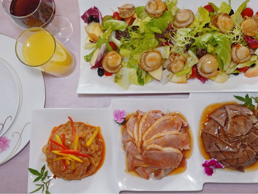 帆立貝蔬果沙拉(海蜇、牛腱、蜜桃鴨)