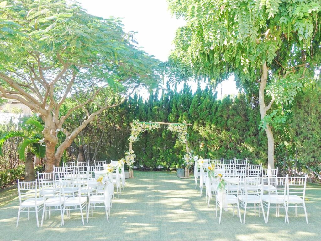 被綠樹和草地圍繞著,這樣的戶外證婚場地讓人覺得好浪漫。