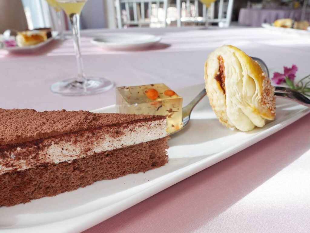 清爽而微甜蜜的桂花凍、薄而化口的酥皮包裹鹹甜香叉燒、提拉米蘇的表現也在一定水準之上
