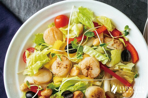 套餐揭開序幕的是「日本干貝沙拉盤」,新鮮干貝搭配色彩繽紛的時令蔬菜,每一口都是海的鮮甜與田的清新。緊接著,「牛小排撘彩時蔬」,精選優質牛肉,外焦內嫩,彩椒與黃瓜的清脆,為肉香增添了幾分輕盈。