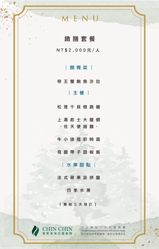 當陽光在水岸邊跳躍,青青帶來「緻膳水岸套餐」,讓您在湖光山色中享用頂級美食。