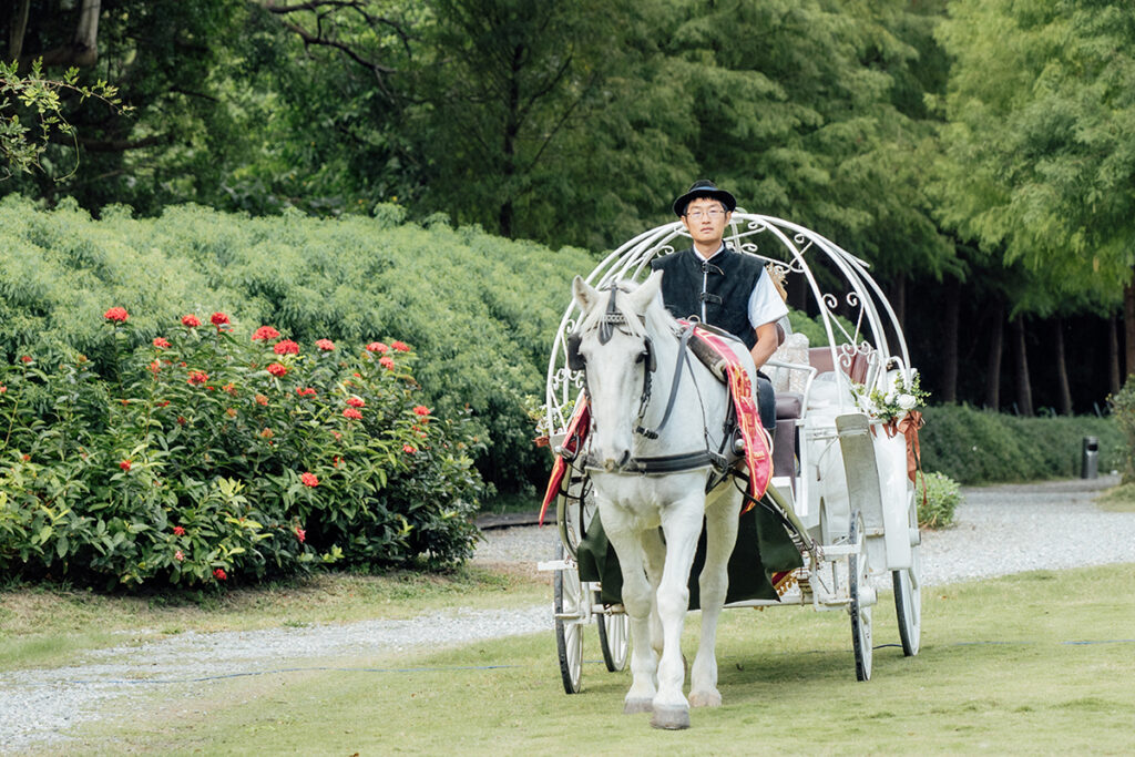 想像一下,在藍天白雲下,鳥語花香中,迎著微風,從宛如國外教堂而來的一輛華麗的仙履奇緣馬車緩緩駛來,承載的不僅是你的愛情故事,更是童話中的夢幻場景!