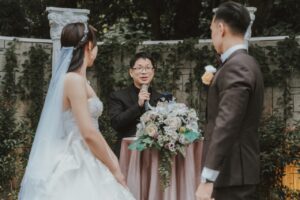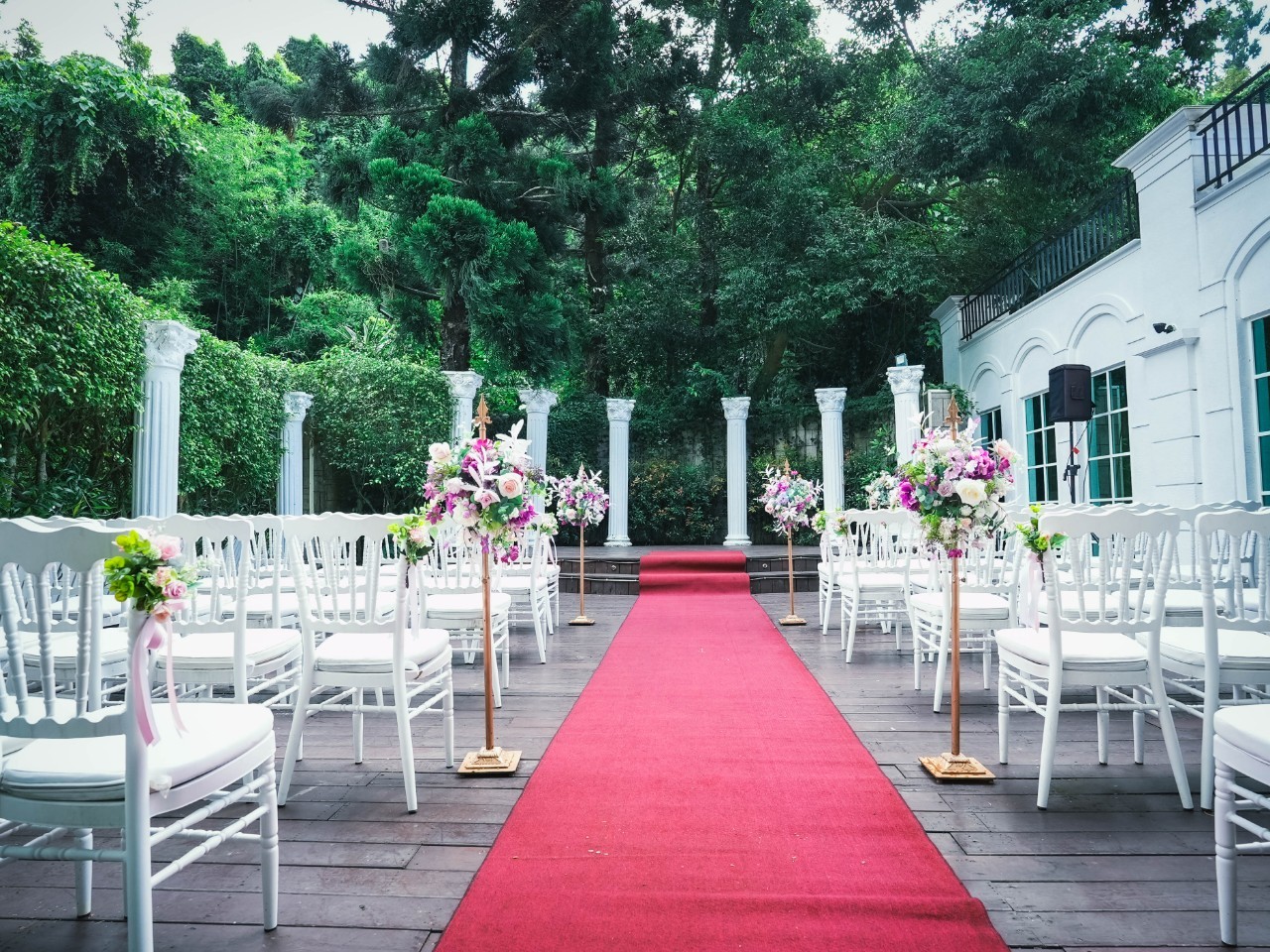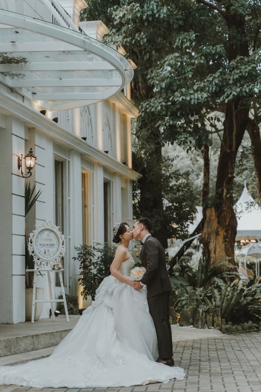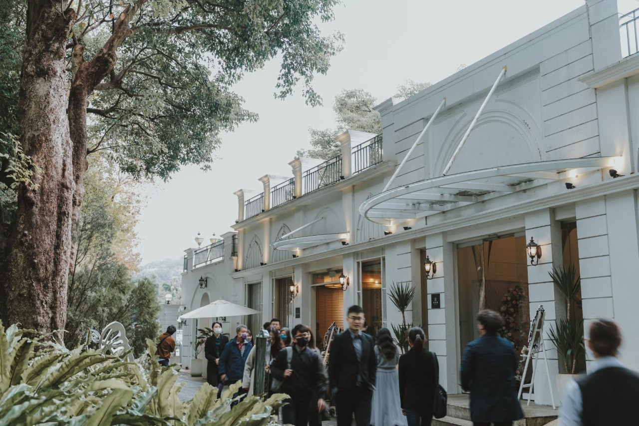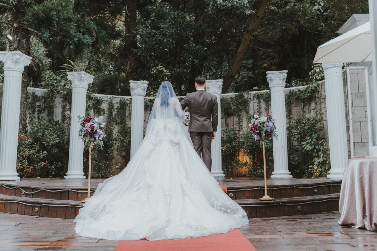 「夏綠蒂庭院」-這個充滿魔幻感的場地,以綠籬圍繞,高大的羅馬柱環繞,讓您在稍微抬頭的瞬間就能欣賞到藍天白雲,感受自然的美好。這裡的白頭翁不遠處不時傳來佳音喜訊,為每場婚禮帶來幸福的祝福。