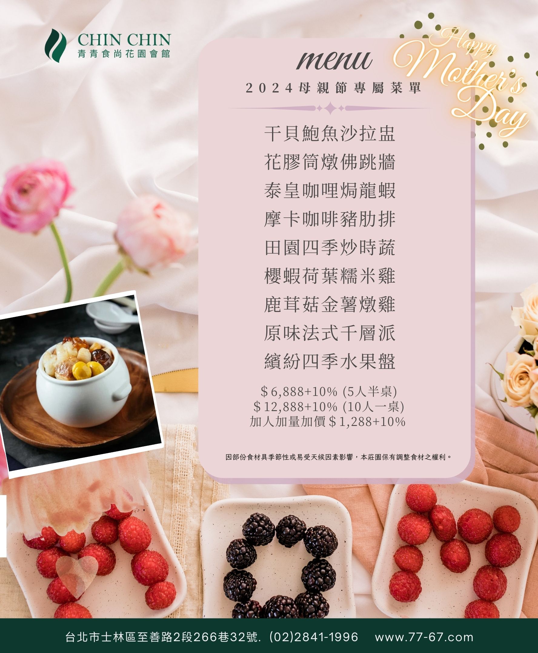 最後,讓我們一起享受這場專屬於媽媽的盛宴吧!無論是家庭聚餐、商務宴請還是節慶慶祝,為您帶來驚喜與滿足。