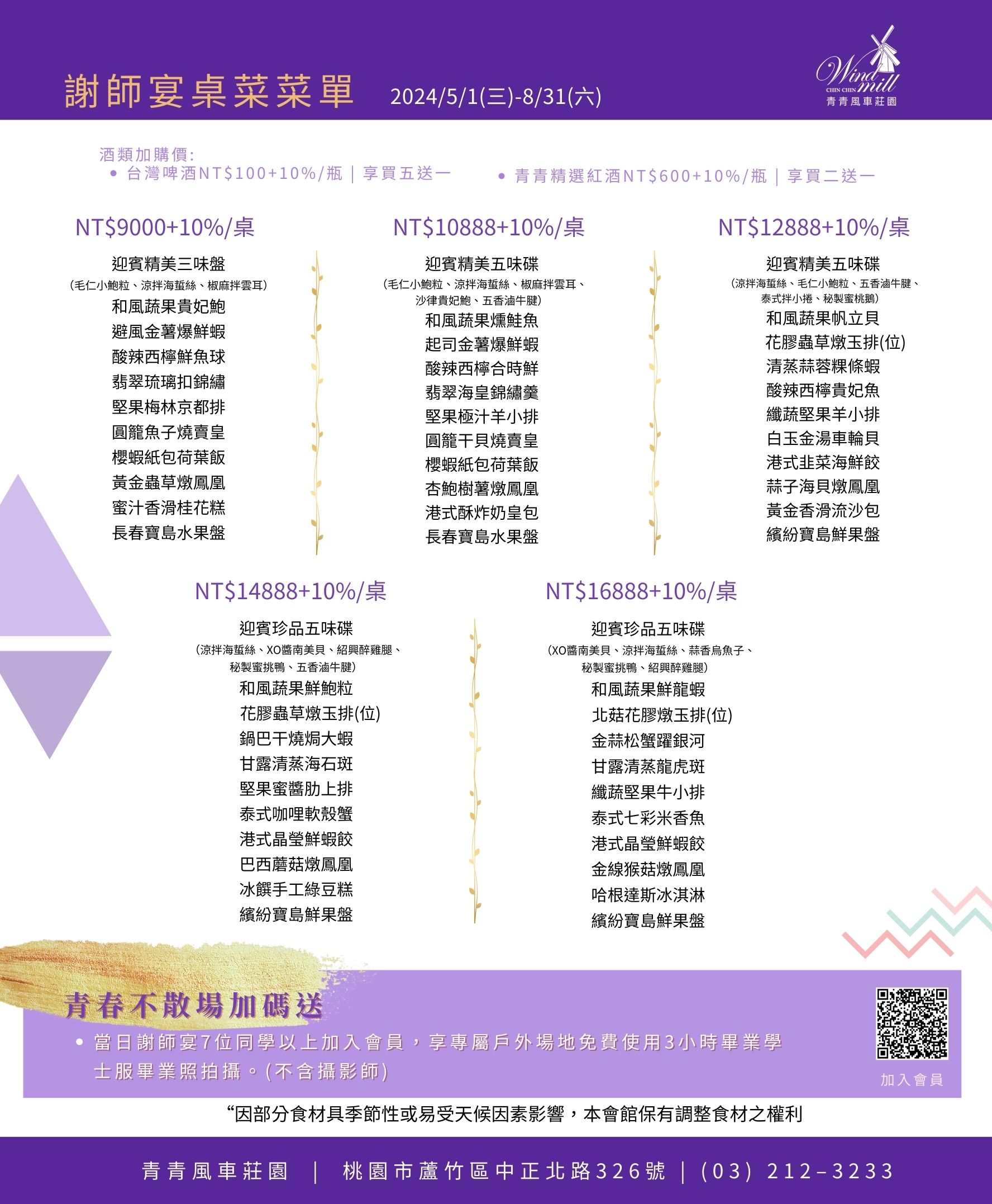 ◎ 免費提供畢業花束x1、感恩老師單人通用券x1 (用餐30人以上)