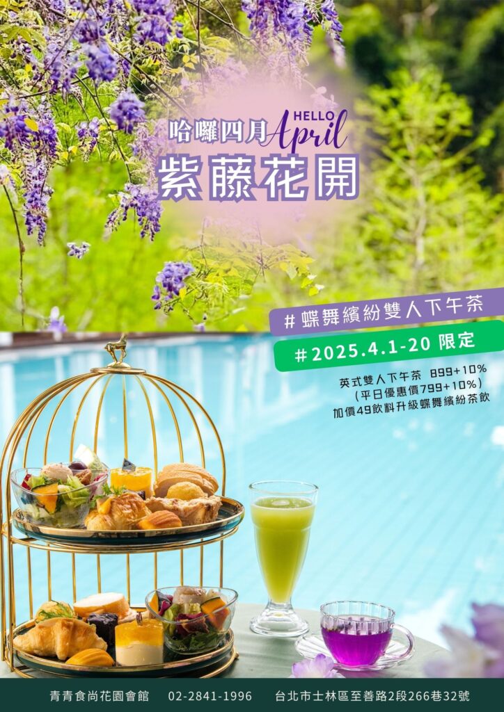 快安排一個悠閒的午后與另一半、好姊妹或家人一同在貴族般的下午茶中來一場浪漫的約會。 精緻的英式下午茶包含干貝蔬菜沙拉、可頌三明治、布朗尼蛋糕,以及新鮮水果等多款美味精緻的輕食小點。再搭配上氣泡果粒茶、現打鮮果汁或美式/特調咖啡,在悠閒微美的浪漫花海中,輕鬆品味愉悅的下午茶時光,來一場夢幻與浪漫兼具的下午茶吧!