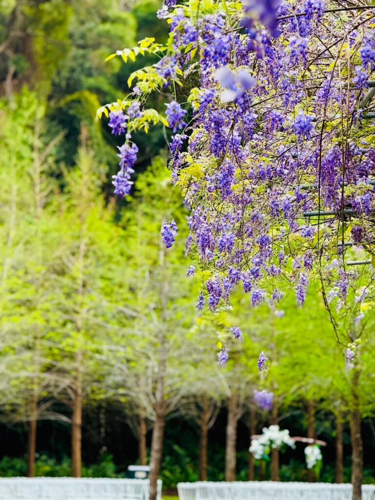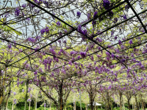 每年春天台灣總會刮起一片有一片的紫色風暴,而目前正是賞「紫藤花」最美的時候,唯花期較短暫,一旦錯過又要再等一年。「紫藤花」的花朵呈長而絢麗的穗狀,花瓣呈深紫色,散發出淡淡的花香。紫藤花不僅美麗而聞名,還因為獨特的生長習性,成了許多地方綠化城市與裝飾庭院的首選。每年三月中下旬到四月初是台灣地區紫藤花盛開的季節,一年一度的紫色風暴千萬不能錯過。